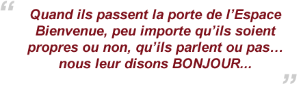 Je vous ai présenté la semaine dernière notre Espace Bienvenue, destiné à répondre de façon immédiate aux besoins urgents des personnes à la rue.